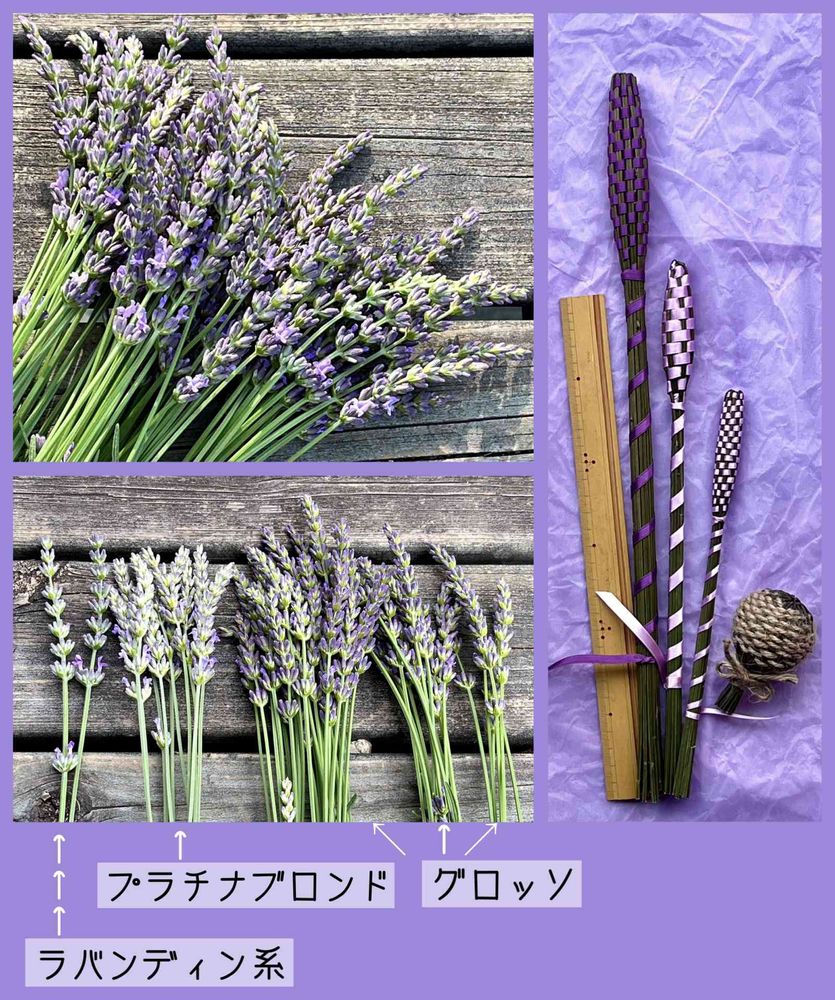 ➡️ 前回、前々回収穫分でラベンダーバンドルズを編みました。毎年恒例の無駄に長いバンドルズは40cm以上🤣 30cm物差しを添えて📏
