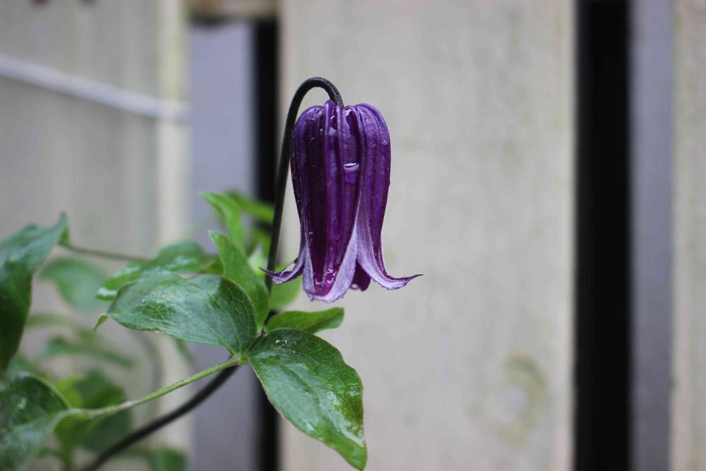 つぼ型のクレマチス、この形も、濃い紫色もキュート✨