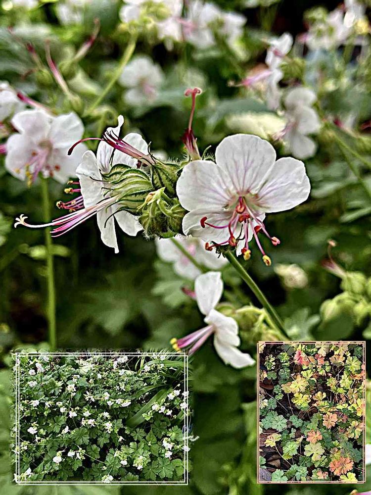カタバミさんのお出かけ先,ゲラニウム・ビオコボ,/去る晩秋は一面変幻多彩色、今は清楚花這う様に緑広げて/の投稿画像