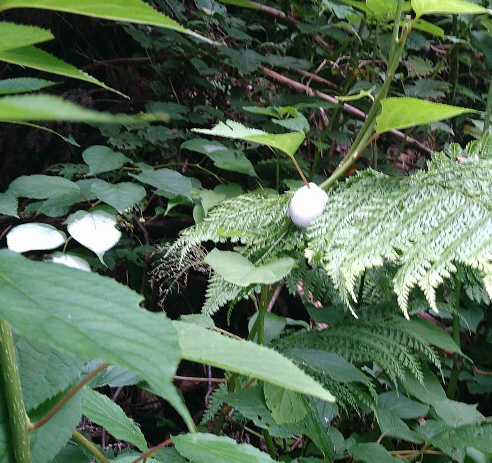 シダに着いている白い物体…
