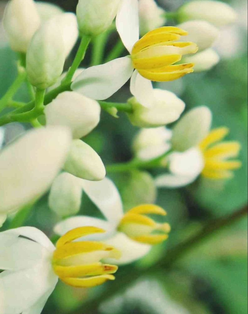 庭のナンテンが咲き始めました🎶