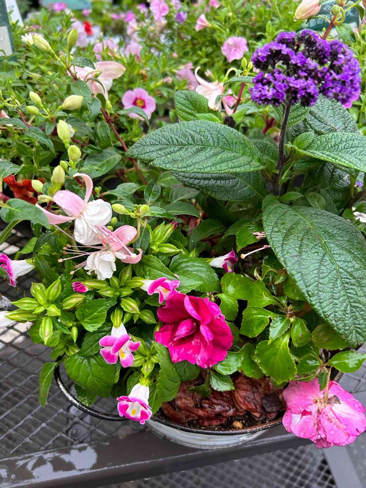 ピンクの🩷フクシアの苗があったので、これに合わせ、ピンクのトレニアと八重咲きインパチェンスのフィエスタ、みんなピンクだとなので、しめ色に紫の🟣ヘリオトロープを入れました😊