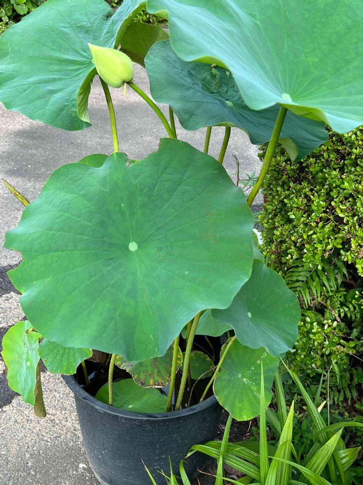 蓮の蕾も膨らんで直径4.5㎝、鉢の淵から70㎝にまで伸びています。