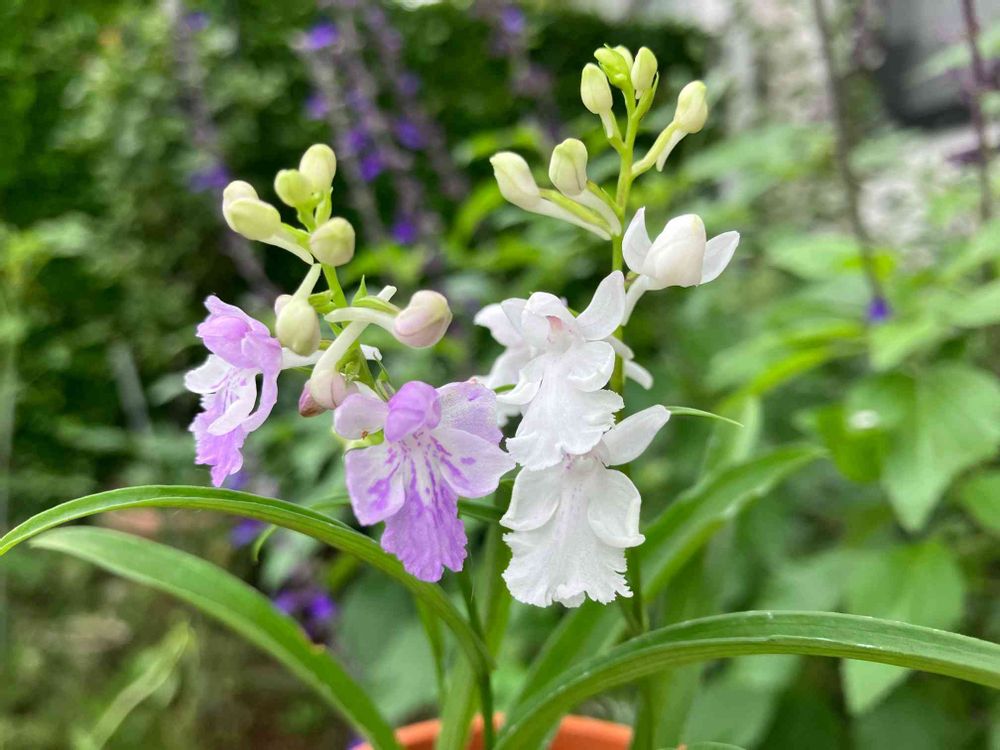 色もほぼ白のみのお花と白と紫が混じったお花が咲いています!あと1本咲くみたいで……