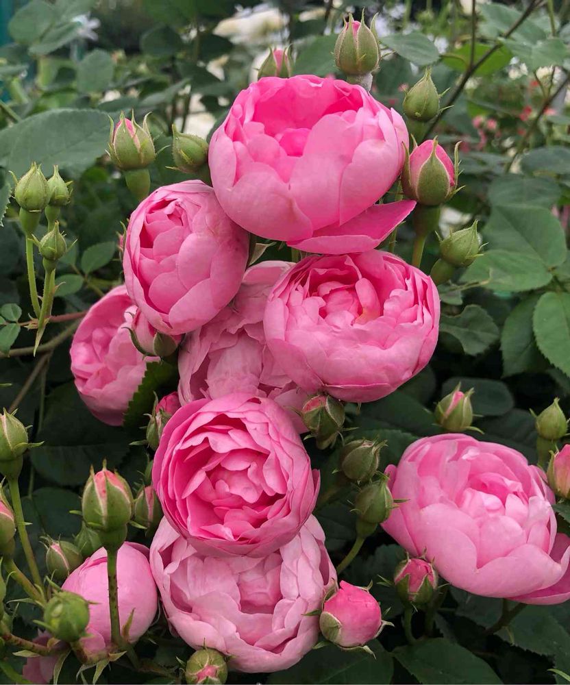 完璧な球状を保つピンクの花。愛らしく鈴なりに咲く様は見事です。極めて多花性。切込みの入った花びら一枚一枚の重なり具合が特徴的で、散るまでその球状の形を崩さない。一季咲き。