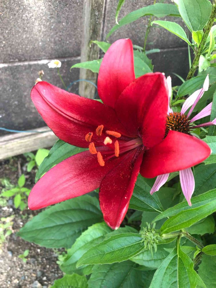 つやつやの真っ赤な百合、梅雨のうっとうしさを吹き飛ばしてくれそうですね😍💕🥰
