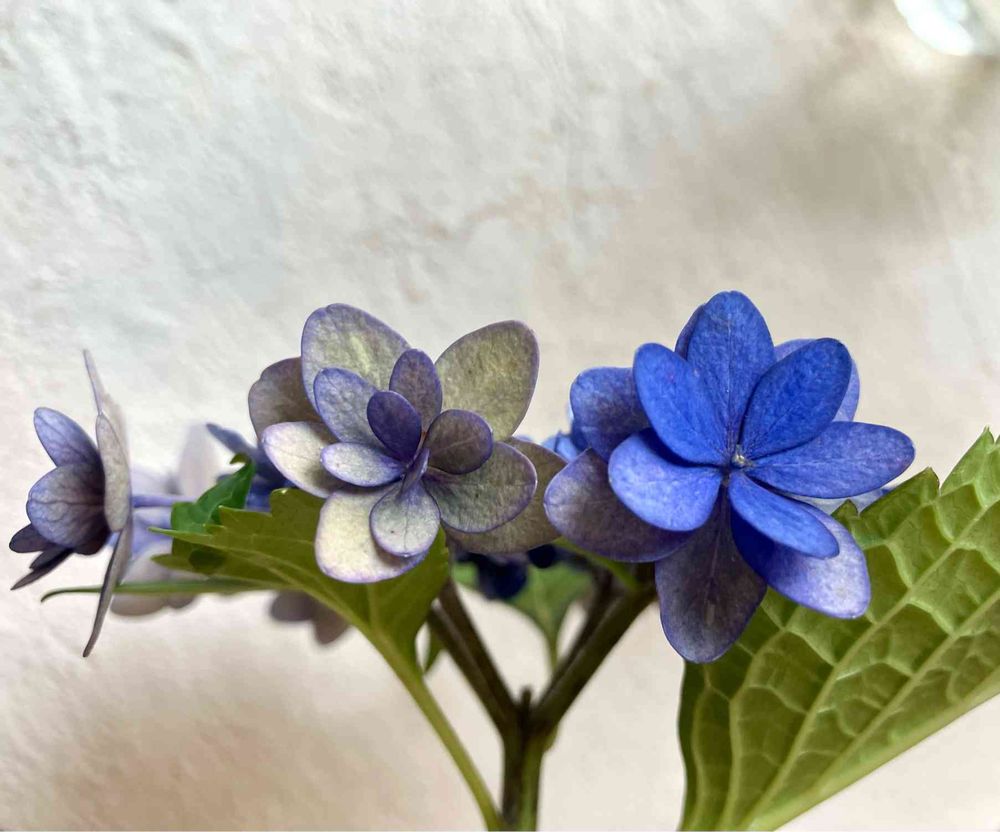 綺麗なブルーが褪せてきて、好みのアンティークカラーになってきたので、カット✂️家の中で愛で愛でしよう〜🌸