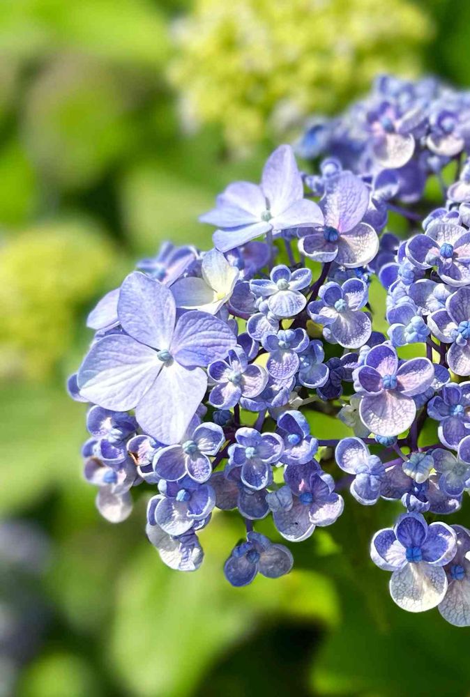 おたふく紫陽花☘️花弁が丸くなるタイプなのに、なぜか数枚大きく開いてるのが混じってます🤔まあ、これはこれでアクセントでよしとしますかw