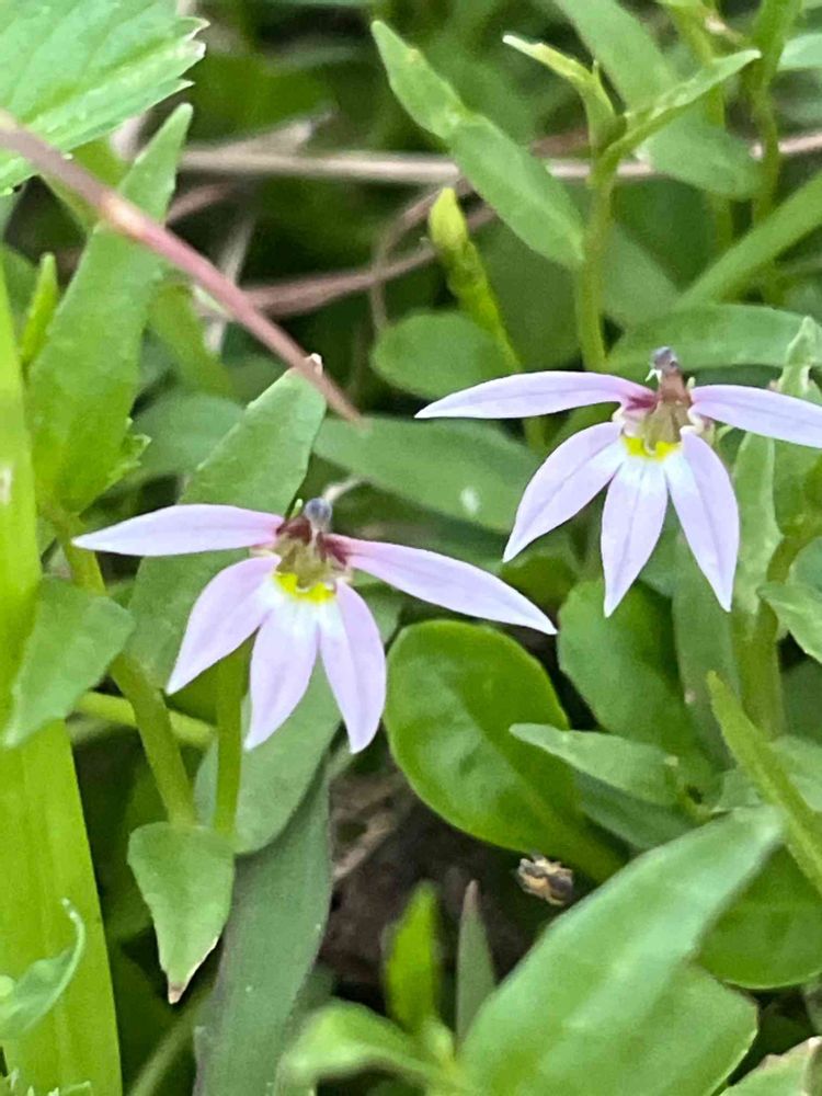 爪の先程もない、薄紫の花。ちっちゃいのに、ランみたいな💐花で。集まってヒソヒソ話ししてるような。