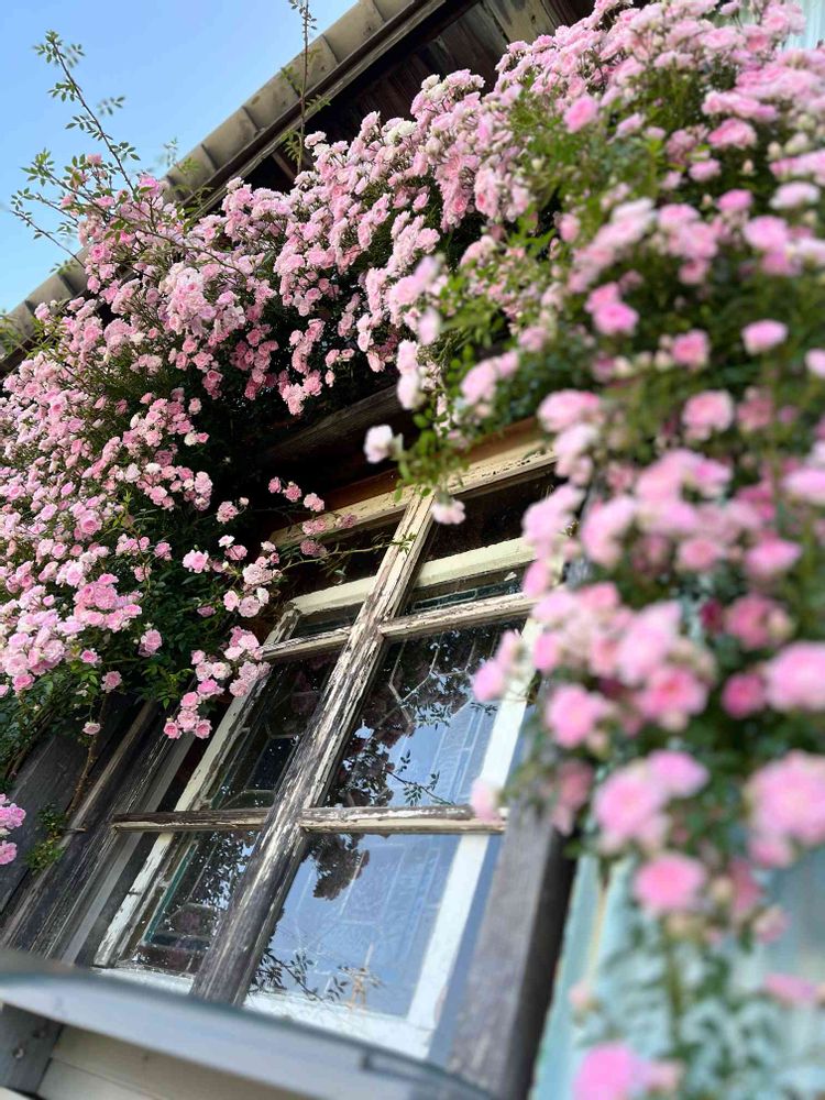 つるバラ🌸と素敵な窓🪟がとてもオシャレだわ❣️