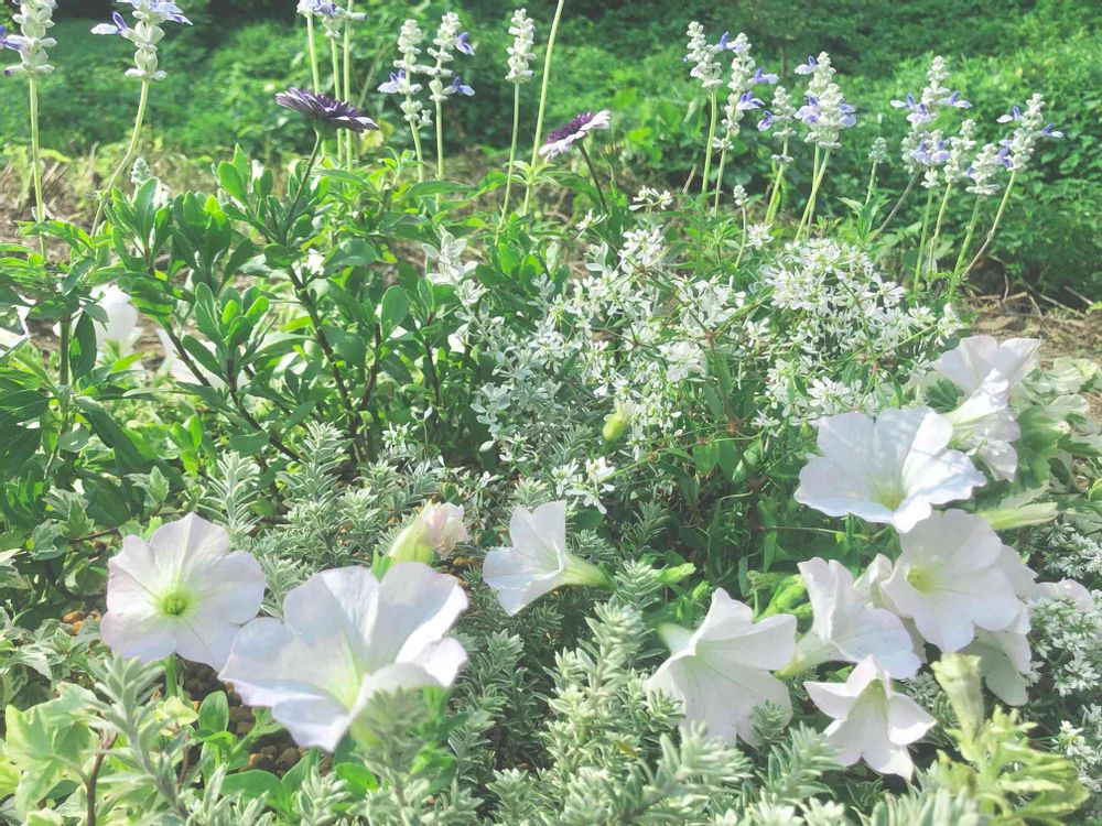 広い庭,ペチュニアおゆきちゃん,ユーフォルビア ダイアモンド スノーの投稿画像