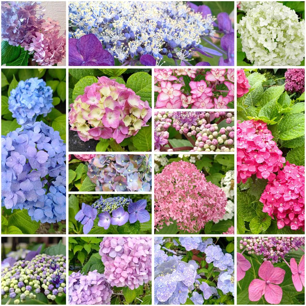 今日のお花🏷️の、アジサイ。今年、散歩で見たアジサイをコラージュしました。