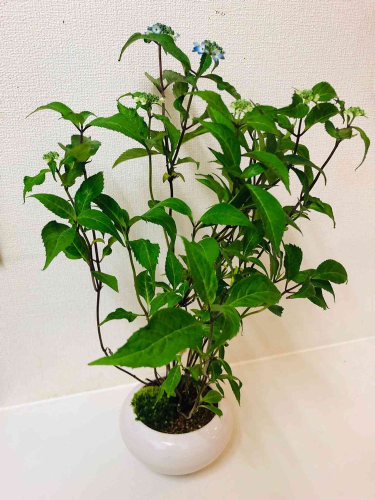 娘さんも植物お好きなのでしょうか?山アジサイの盆栽は花屋さんでなかなか見かけないように思います