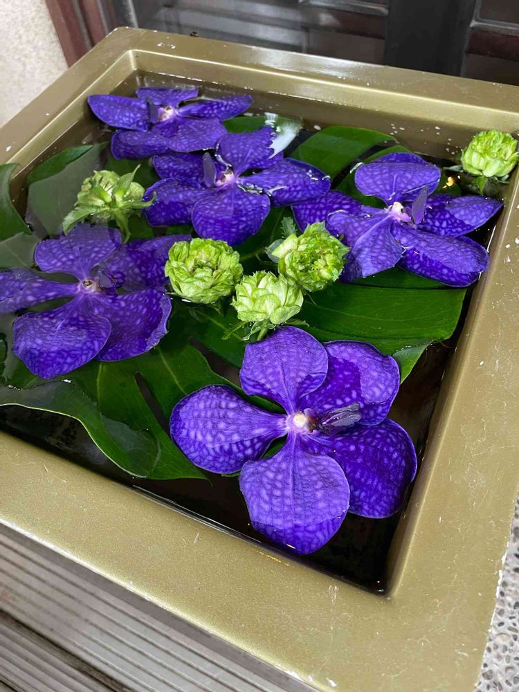 見て頂きありがとうございます、とても素敵ですね、多分青色のお花は蘭のバンダかと思います
