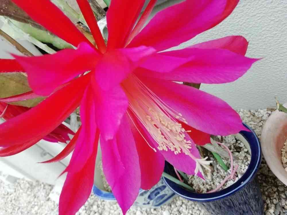 2個目のクジャクサボテンが咲きました。綺麗ね😃1個目左下ショボン(´・c_・`)