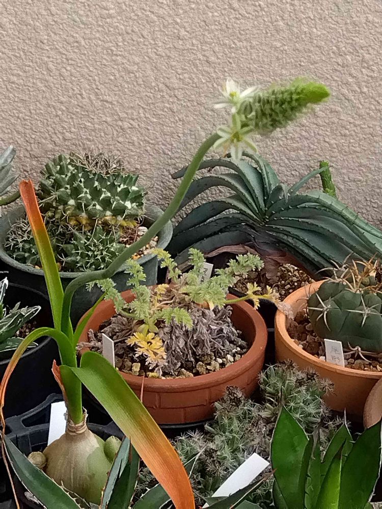 花友が増えて困るのでと、小さかったベビー5~6個くれたのが、何年前か? 綺麗なグリーンに成り、大きく育ち(まだ5センチ位)始めての花です🎶 皮が剥ける毎にベビーが出てきます🎵