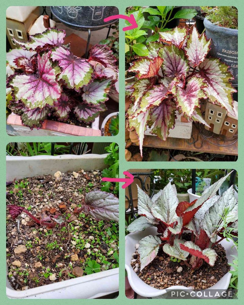 上のレックスベコニアは園芸店で今年購入したレックスちゃんです。大きくなりましたが、葉っぱ🌱の色がわるくなってしまったような😞