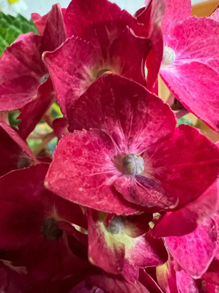 真っ赤な紫陽花可愛らしい、我が家のも真っ赤にして見たい気分😀