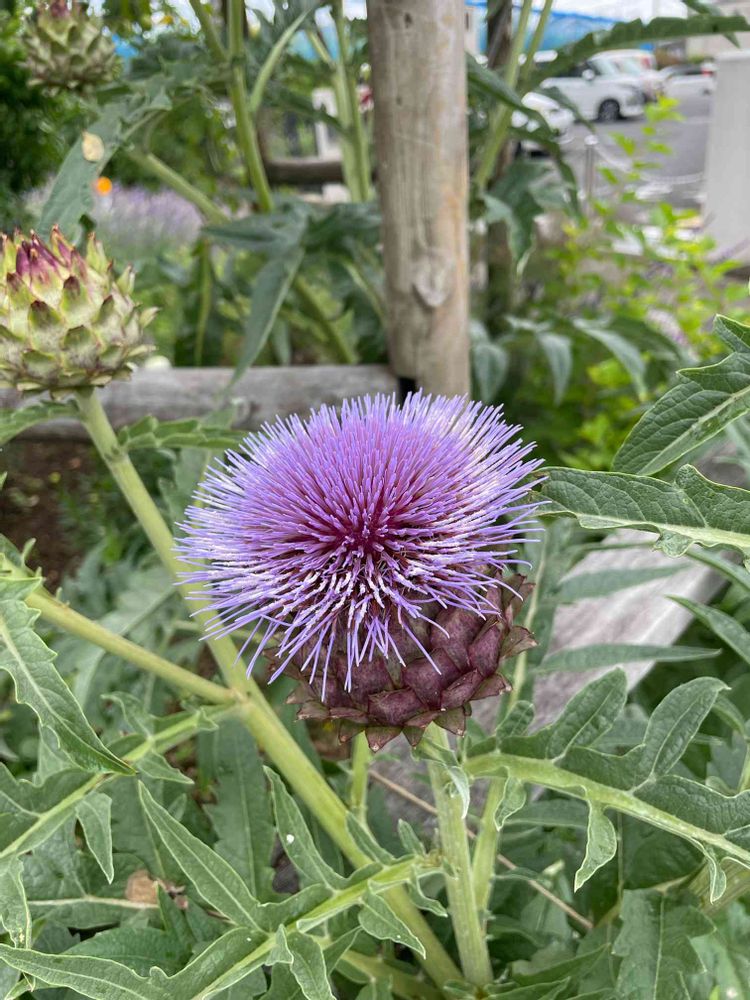 大きなアンティーチョークの花が咲いていました🌸