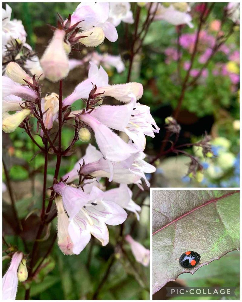 去年はシックな銅葉で楽しみ、今年は可愛い薄ピンク色のお花が咲き、そして小さなお客様🐞のご来訪《ピンポーン 🎶》