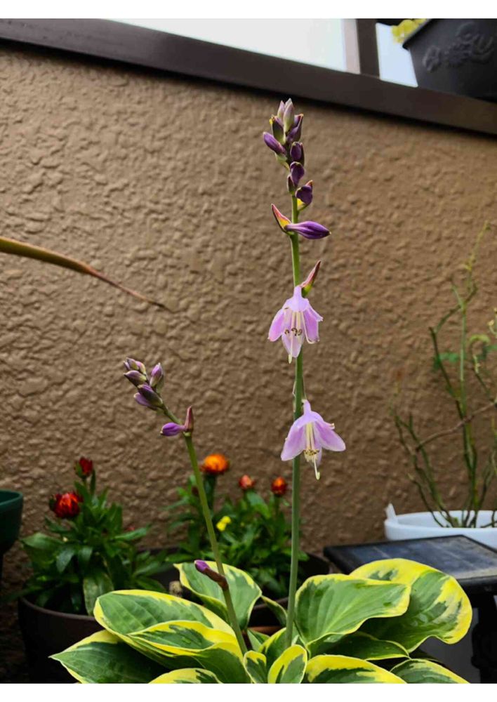 ギボウシ🌸縁取りの黄色い葉っぱおしゃれですね✨
