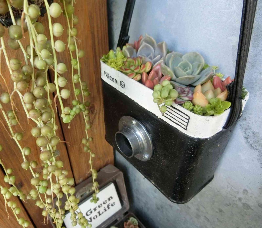ここに多肉ちゃん達を寄せてしまうのは、さすがサクラソウ😆🎶アイデアとセンスが光ってます✨下のトランクみたいなのは、もしかして…あの看護婦さんバック?