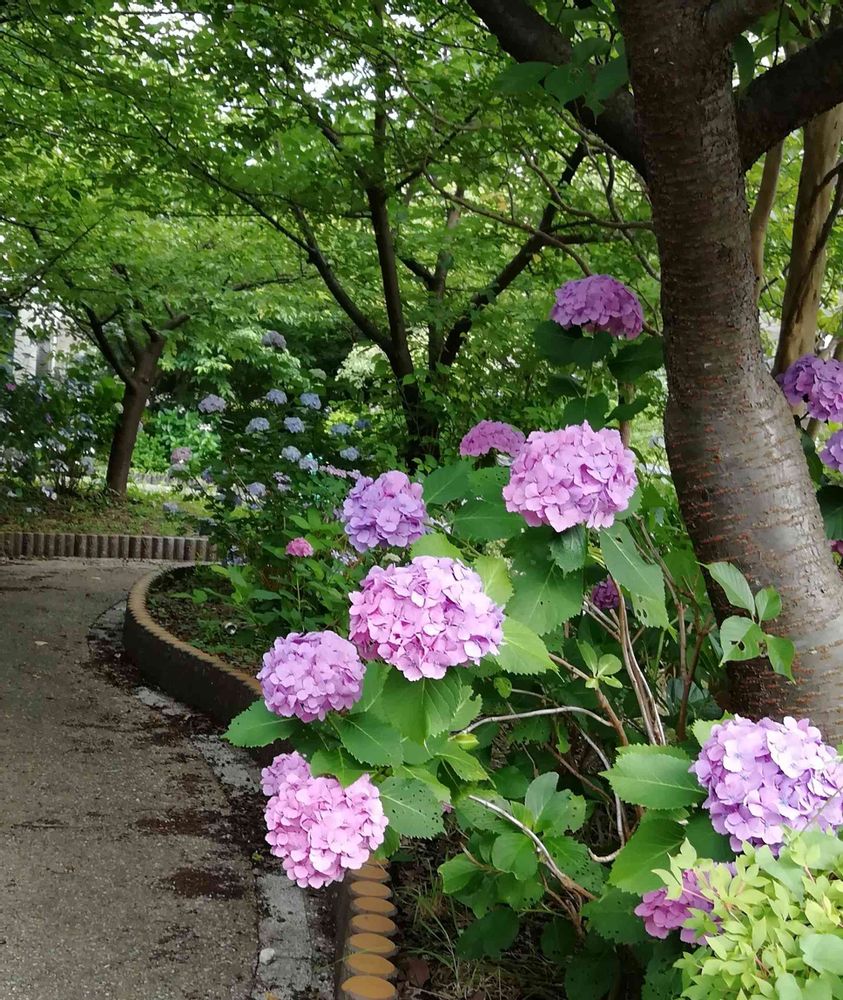 夕方のお散歩道紫陽花が綺麗な小路素敵でした💕