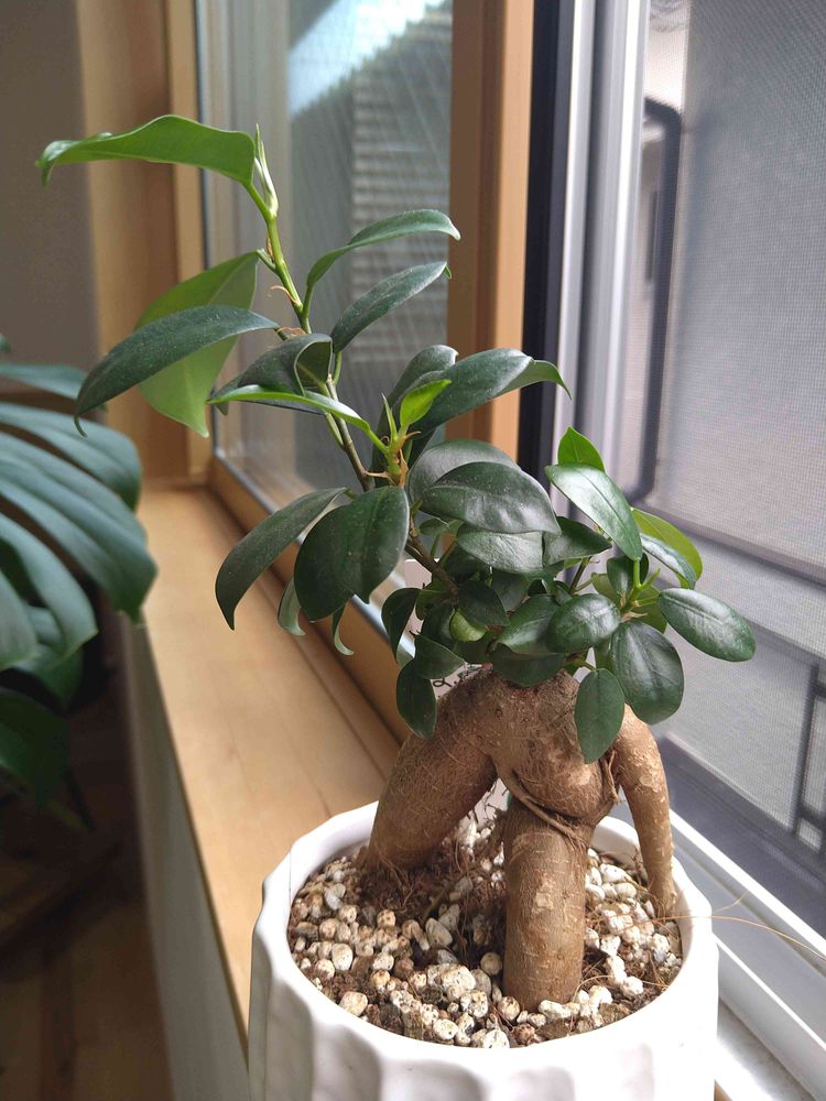 290円のガジュマルも、陶器の鉢に植え替えれば、いい感じに🌿