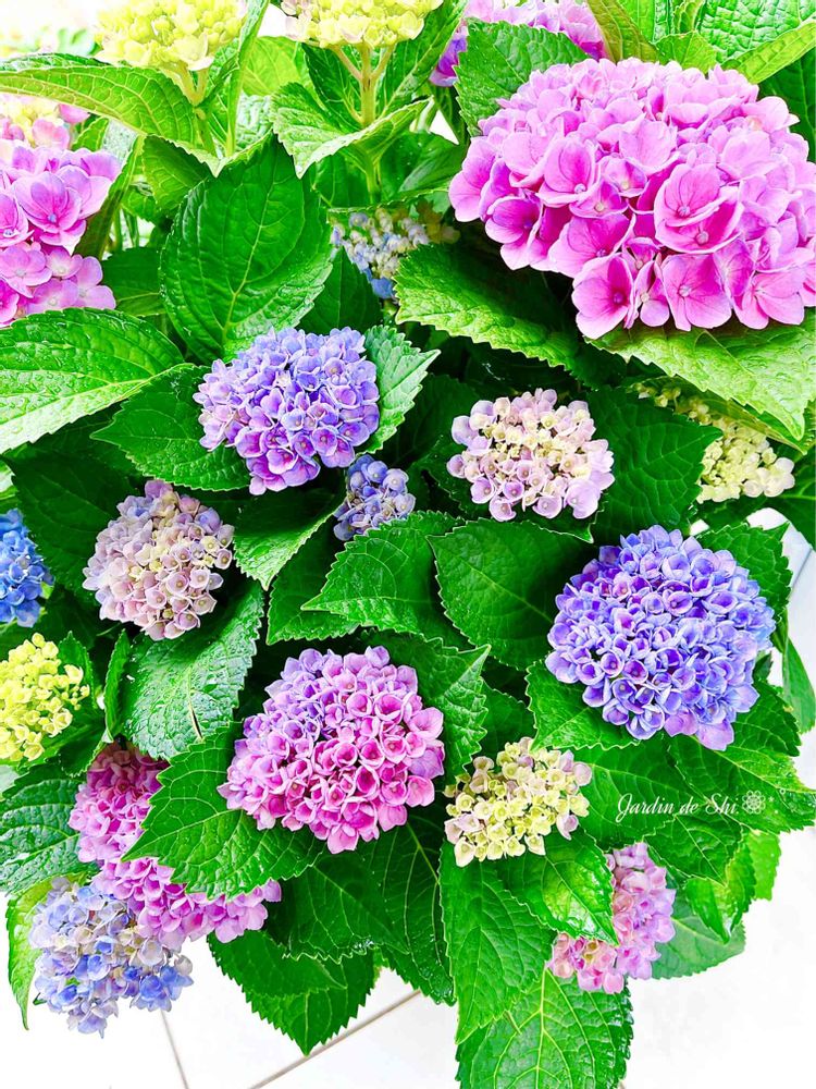 こんなひとつの紫陽花からこんなカラフルなお色が…💗💙💜