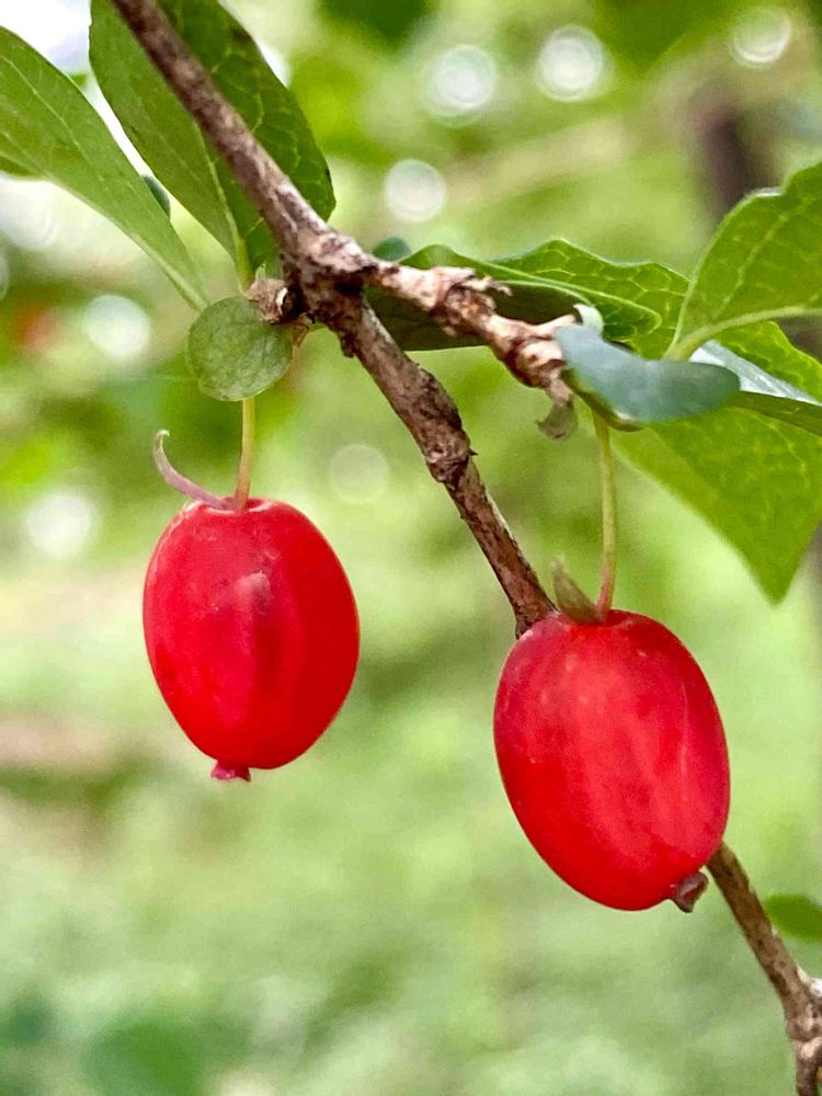 ウグイスカグラの果実(液果)が熟しましたー🔴🔴🍃