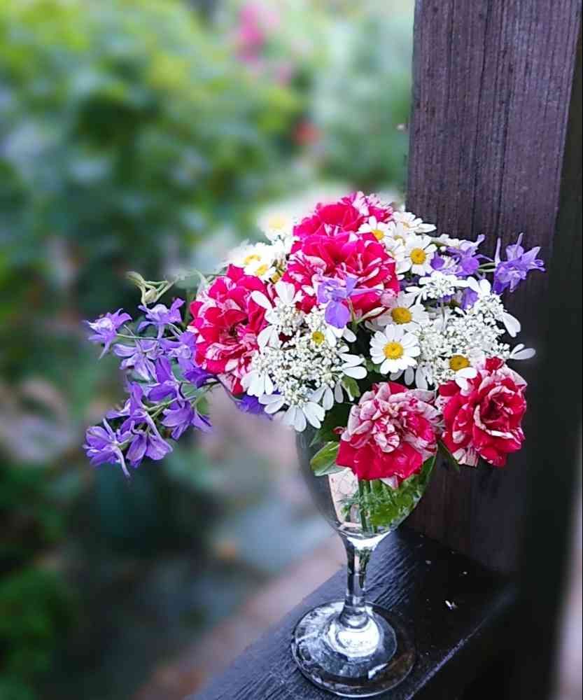 花を空き瓶に生け、シャケ瓶じゃなくジャムの瓶にした方がいいか?と迷ったのは誰? 私です。