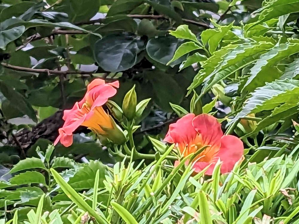 これまた夏の花と認識してる鮮やか色彩のノウゼンカズラが高い所で咲いてましたね〜🌺