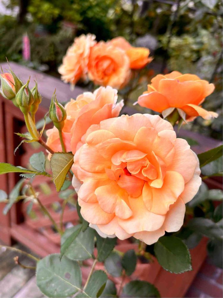 今日の庭pic。 ウッドデッキ前のキャスリーン淡ーいオレンジ🍊🍊色で満開継続中‼️