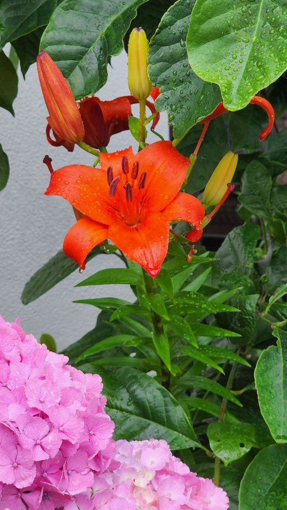 紫陽花を探して歩いていたら、奥の方にオレンジ色の花が咲いていました。