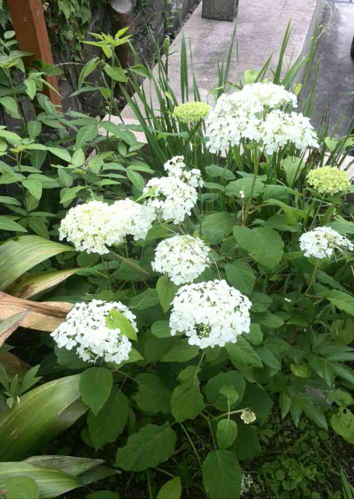 雑草だらけの場所ですが家の隅っこで開花していたアナベル。