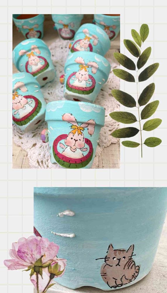 寸胴うさぎリメ鉢完成しました🙌🙌