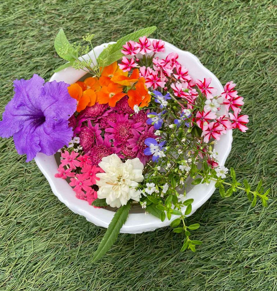 季節のハーブも加えてローズボウルに飾ってみました❤️