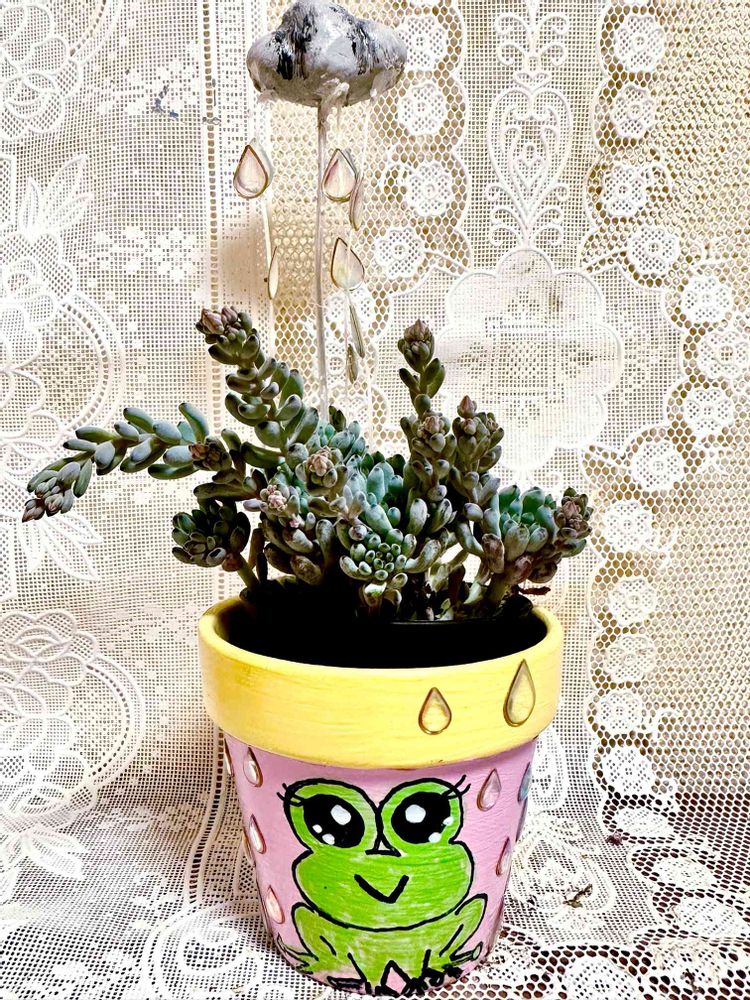 入院前に作ったカエルの🐸リメ鉢と雨雲のピックです。