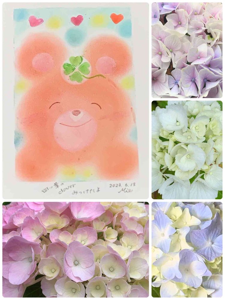 のんびり、ほっこりくまさんが、紫陽花さん見ています💕🌈