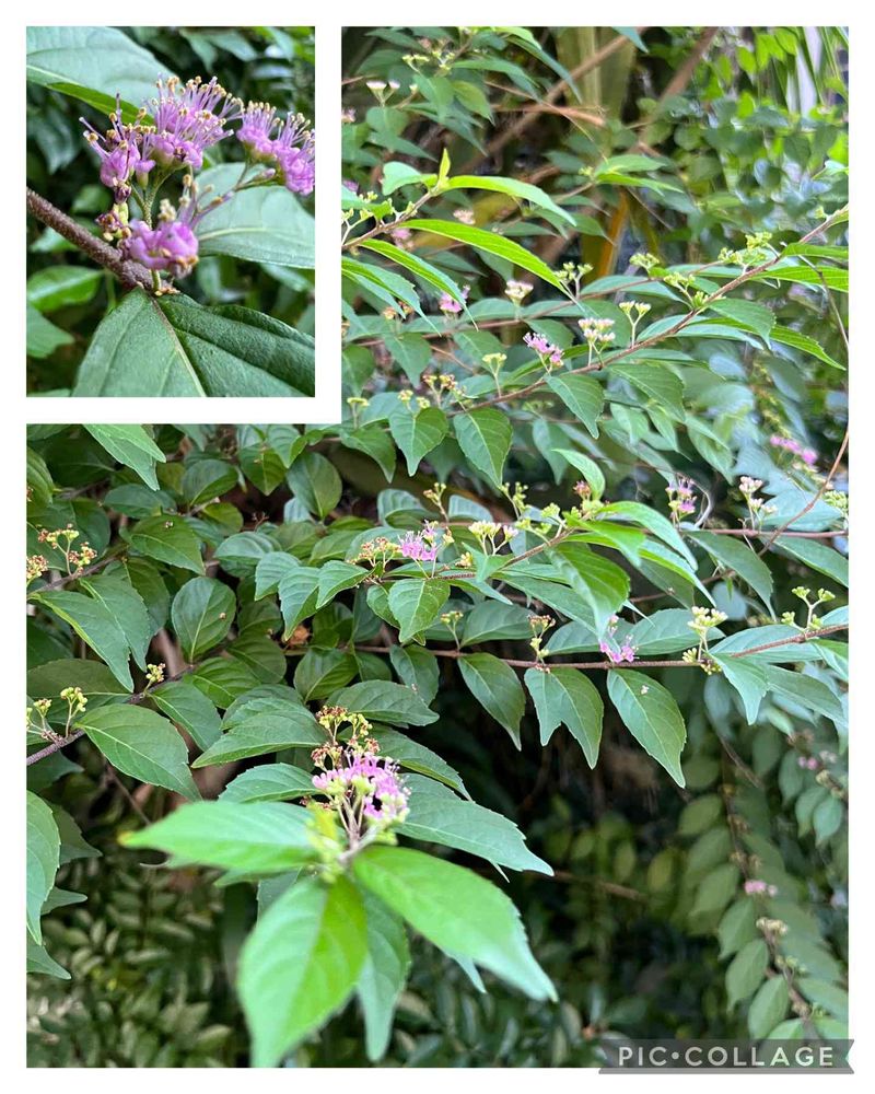 こんもりとした緑の中に綺麗なピンク紫のパチパチっとした花が並んで、野趣もあり綺麗だなぁと。見たことのない感じなので自分で調べて、カリカルパ・トメントーサって??と思ってたら、きらりさんから、ムラサキシキブ/ コムラサキシキブではないかとお教えいただきました!そう、それ、でした。あとは実がなったら、確定です😀