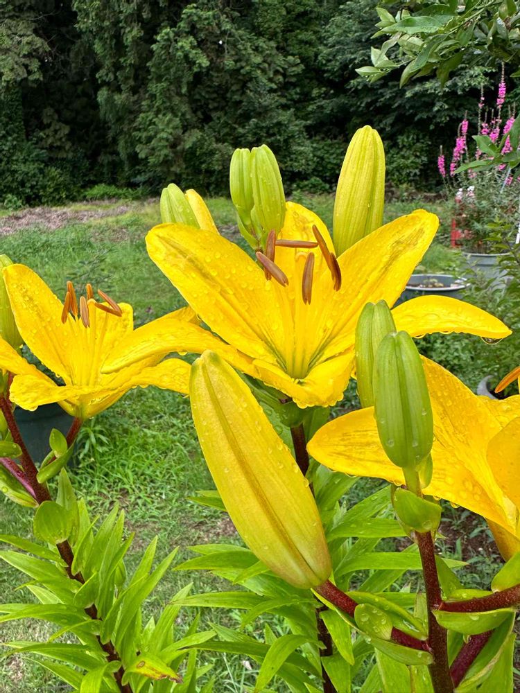梅雨空に百合の花が咲き出した( ᴖ ·̫ ᴖ )