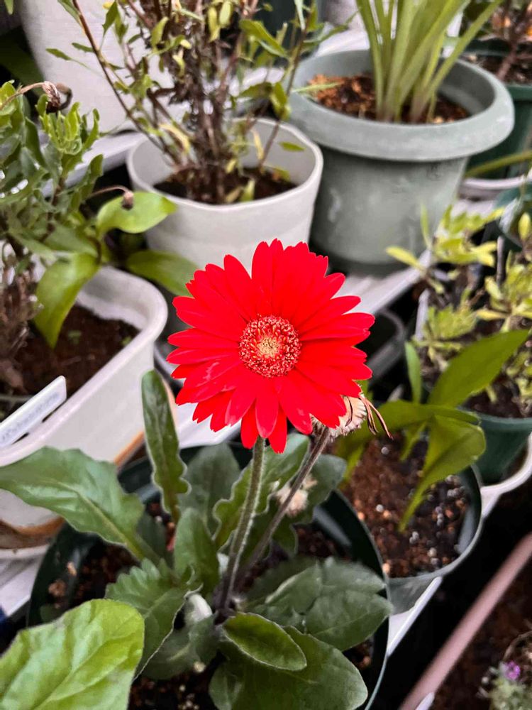 おはようございます。敦賀市、今日も雨です☔️出張前に写した、赤いガーデン ガーベラ ガルビネア🌸花持ちがいいですね♪