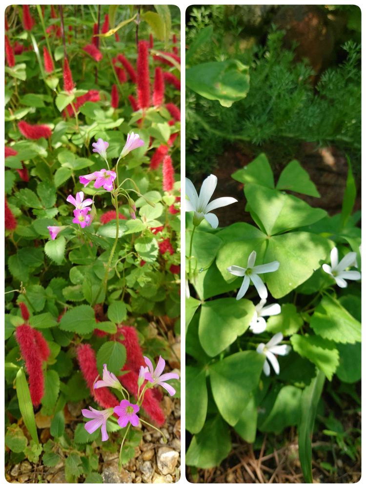 ピンクのカタバミ🩷とキャットテイル❤️地植えなのかな❓