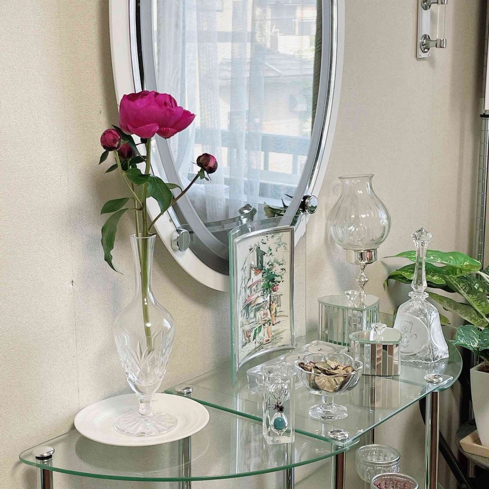インテリア仏壇「鏡壇ミラリエ」「鏡壇ミロワ」に今日(6/16)の誕生花の「シャクヤク(芍薬)」 を飾ってみました。