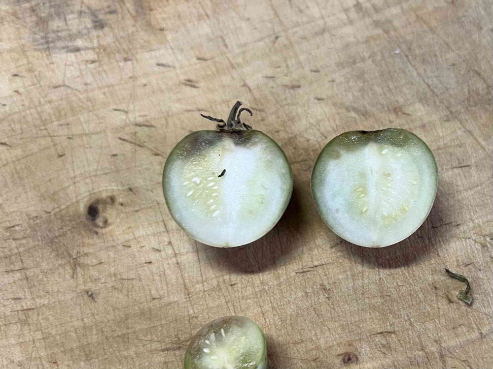 半分に切って見ると完熟はしてないみたいです、より強いジャガイモ臭がします。