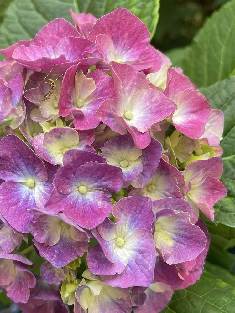 紫陽花・ブルーアース💠やっぱりさっき載せた挿木のコは間違いなさそう。タグ🏷書いても、一年経てば掠れ消えてしまうので気をつけなきゃね(*¯艸¯)小さなカマキリさんも一緒にパシャリ🎵