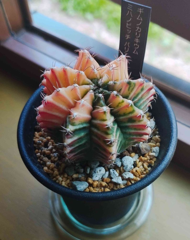 斑入りのサボテンは通常のサボテンより弱く私みたいなサボテンビギナーが手を出してはいけないと分かりつつ、あまりに好みの色合いだったので持ち帰ってしまった あまり根もはってないようなので日陰で養生中