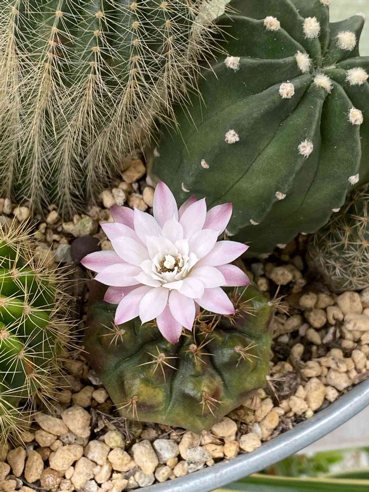 サボテンの魅力は想像出来ないような花が咲くことだけど、こちらは控えめな色で可愛いですよね🥰