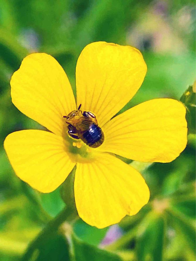 道端や、空き地で可愛い笑顔を見せるカタバミに、惹かれてやって来た蜂🐝