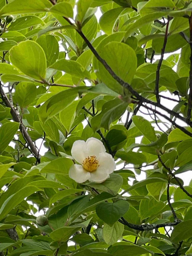 シャラ/ ナツツバキ。この花は、花期が短い。去年は、うっかりしてこの木の花は見損なった🥲